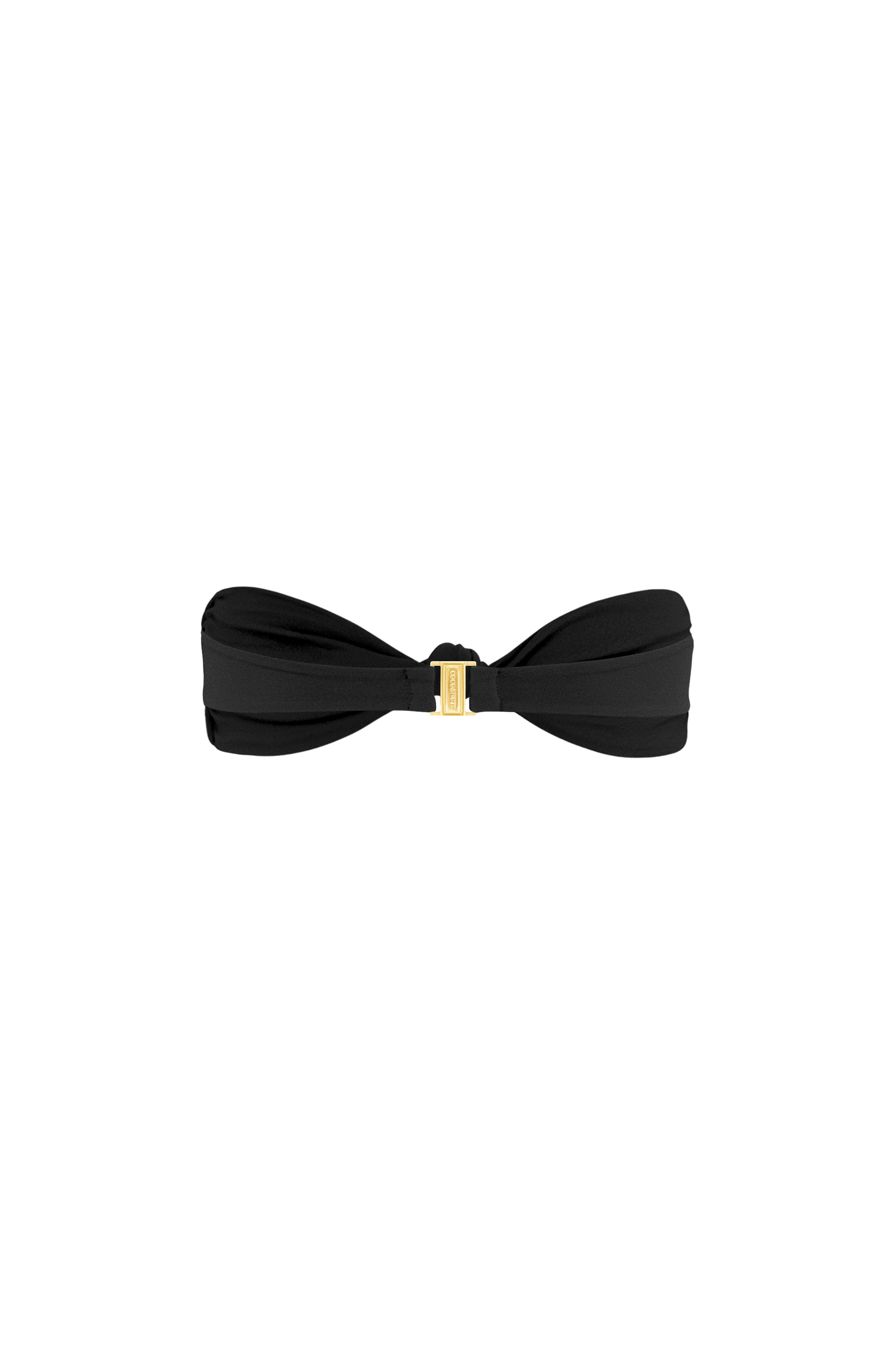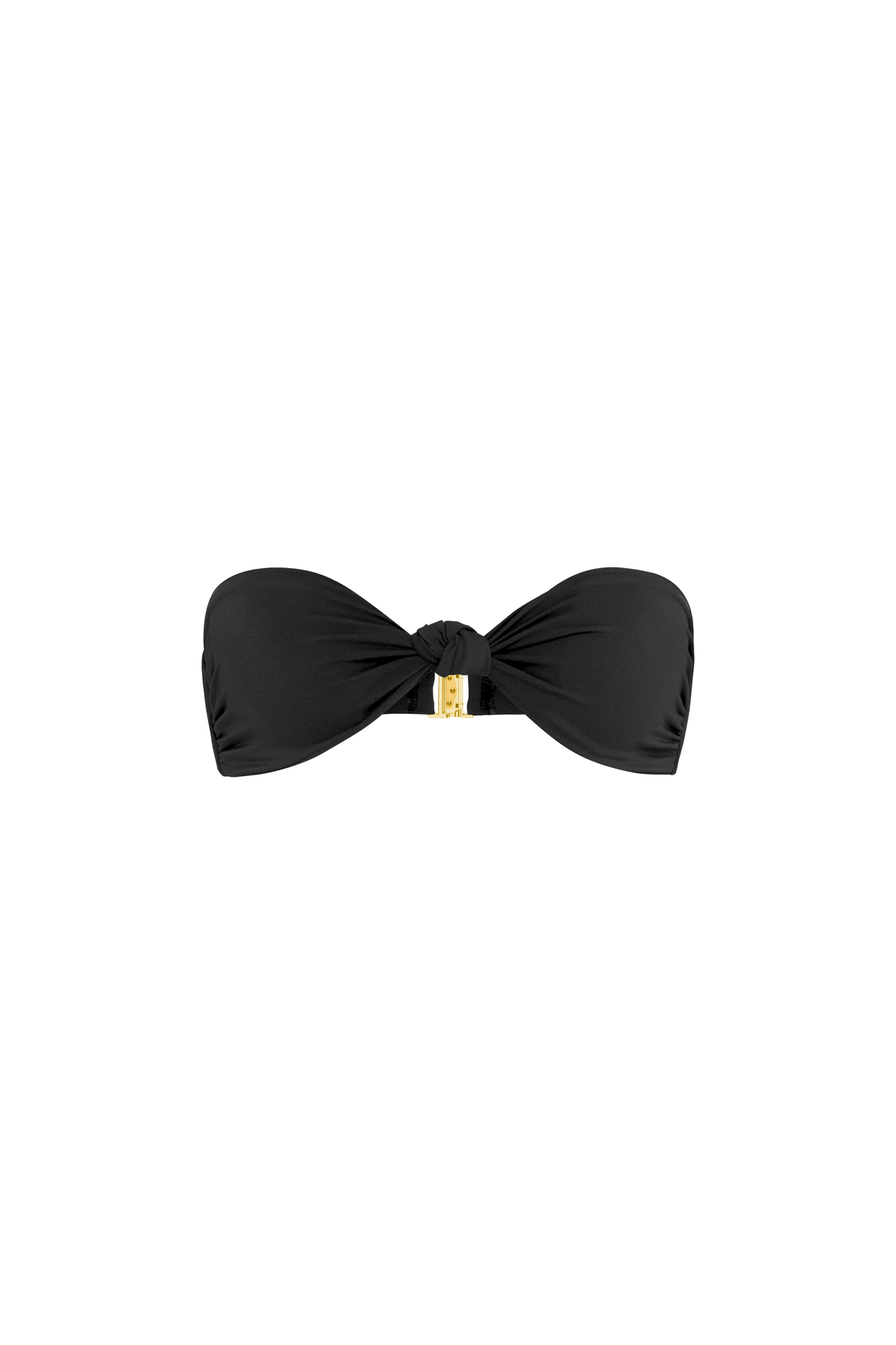 A classic bandeau style, the Cindy bikini top comes with a vintage knot detail at front and a gold embossed clasp closure at back. This minimalistic top can be styled with any of our bikini bottoms.