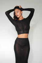 Haze Cardigan, light and airy with an elegant drape. The Haze Cardigan is made from a fine, breathable knit with extra-long sleeves and delicate front buttons. Wear it open over your swimwear or buttoned up as a top. Style it with the matching Haze Skirt for an effortless, elevated look that moves with you – from slow mornings to golden hour strolls.