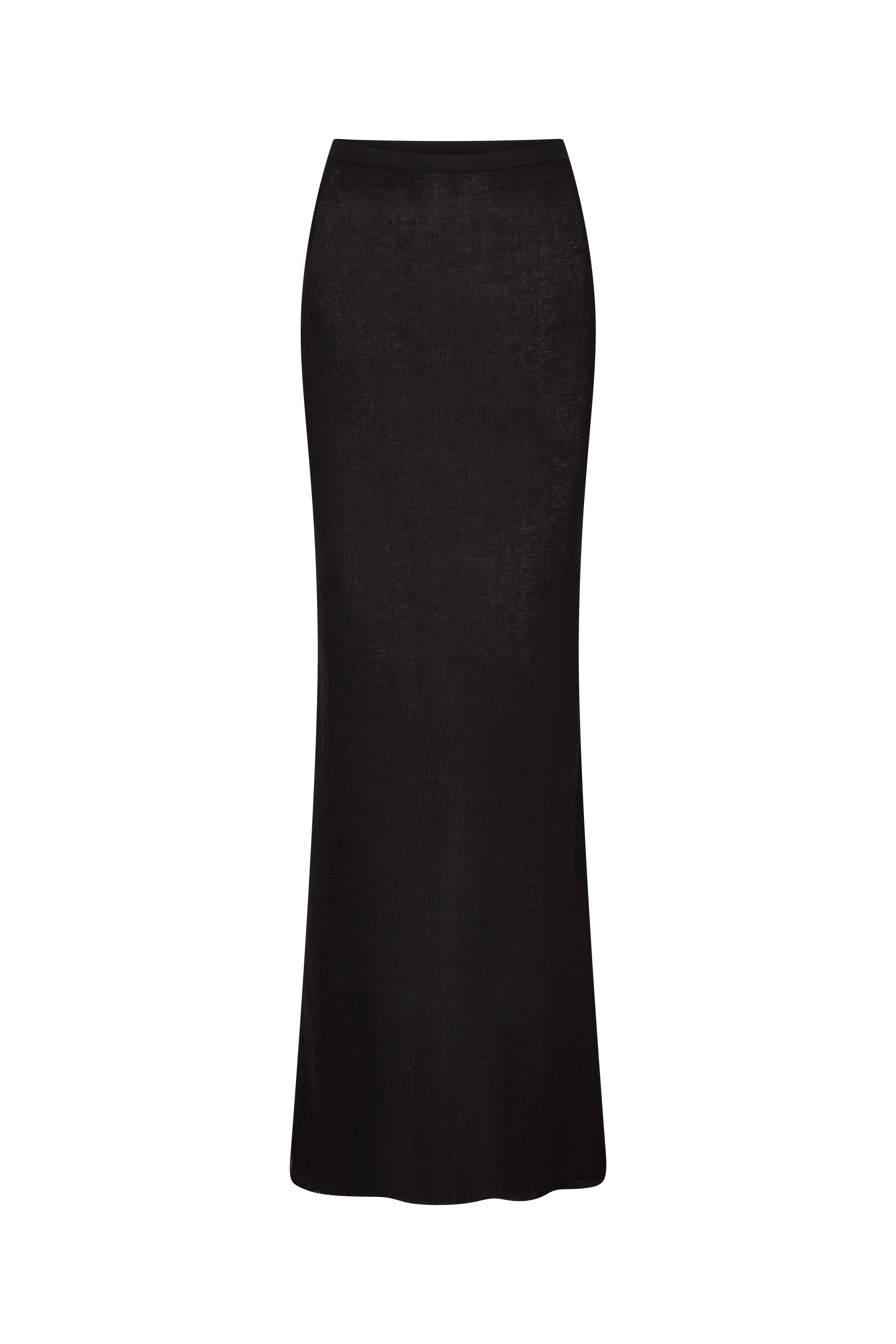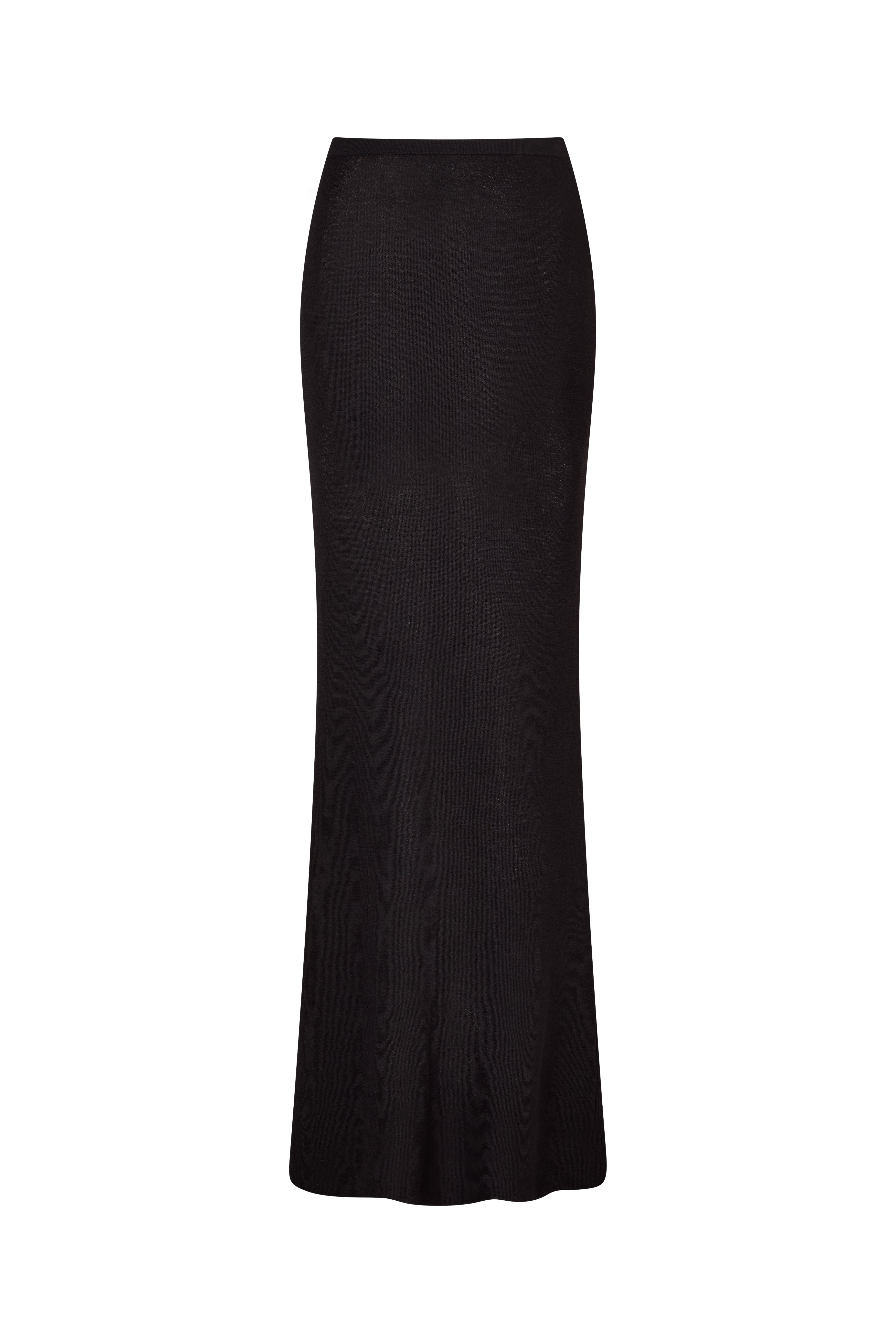 Haze Skirt in Black, sleek, minimal, and endlessly wearable. Crafted in a fine, breathable knit the Haze Skirt features a slim fit that gently hugs the body and a maxi-length silhouette with a clean waistband. Designed for a refined, tone-in-tone look, it pairs perfectly with the matching Haze Cardigan or your favorite bikini top. From resort dinners to golden-hour strolls, it’s your effortless go-to.