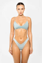 - V-shaped bikini bottom with a ’90s high-hip influence