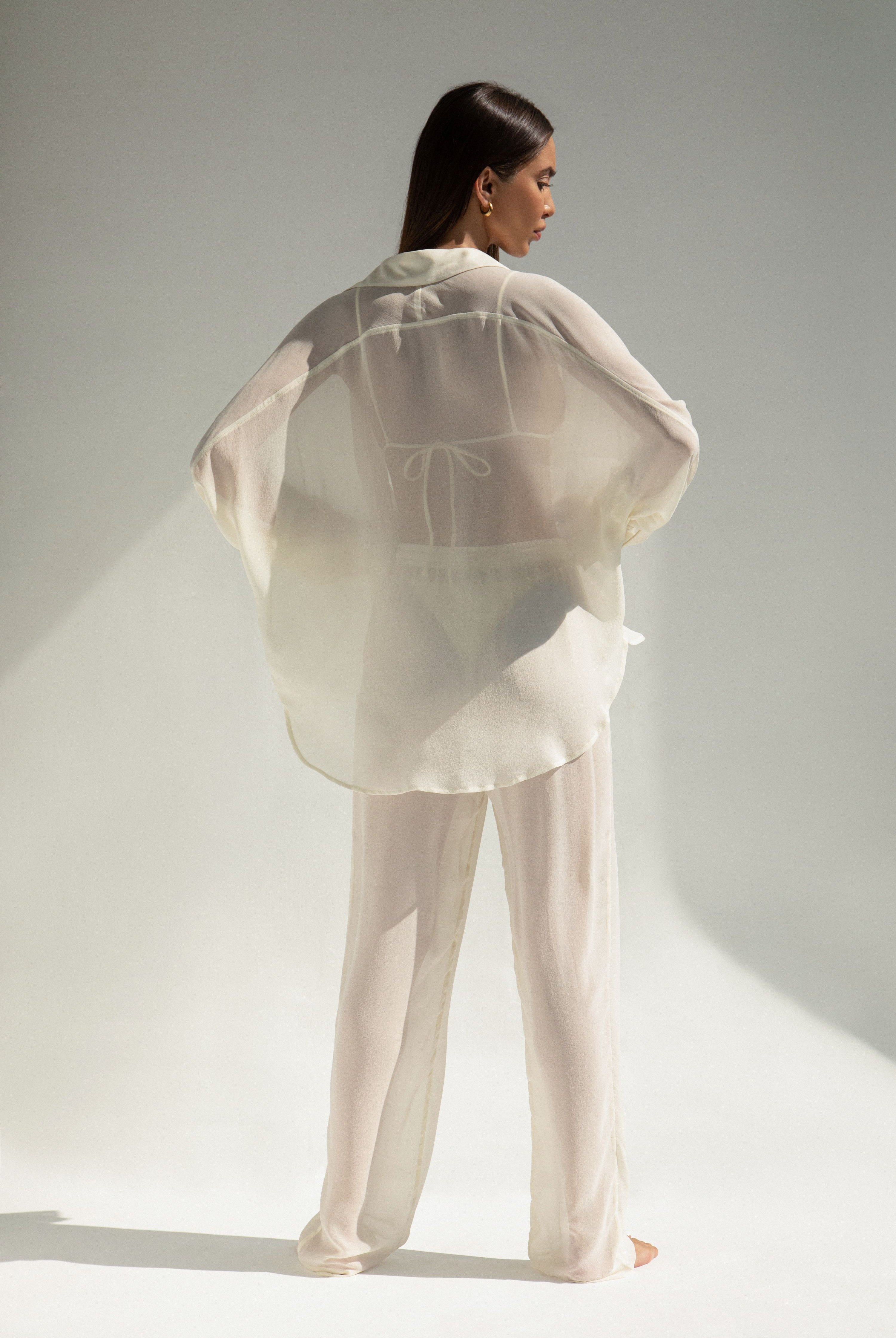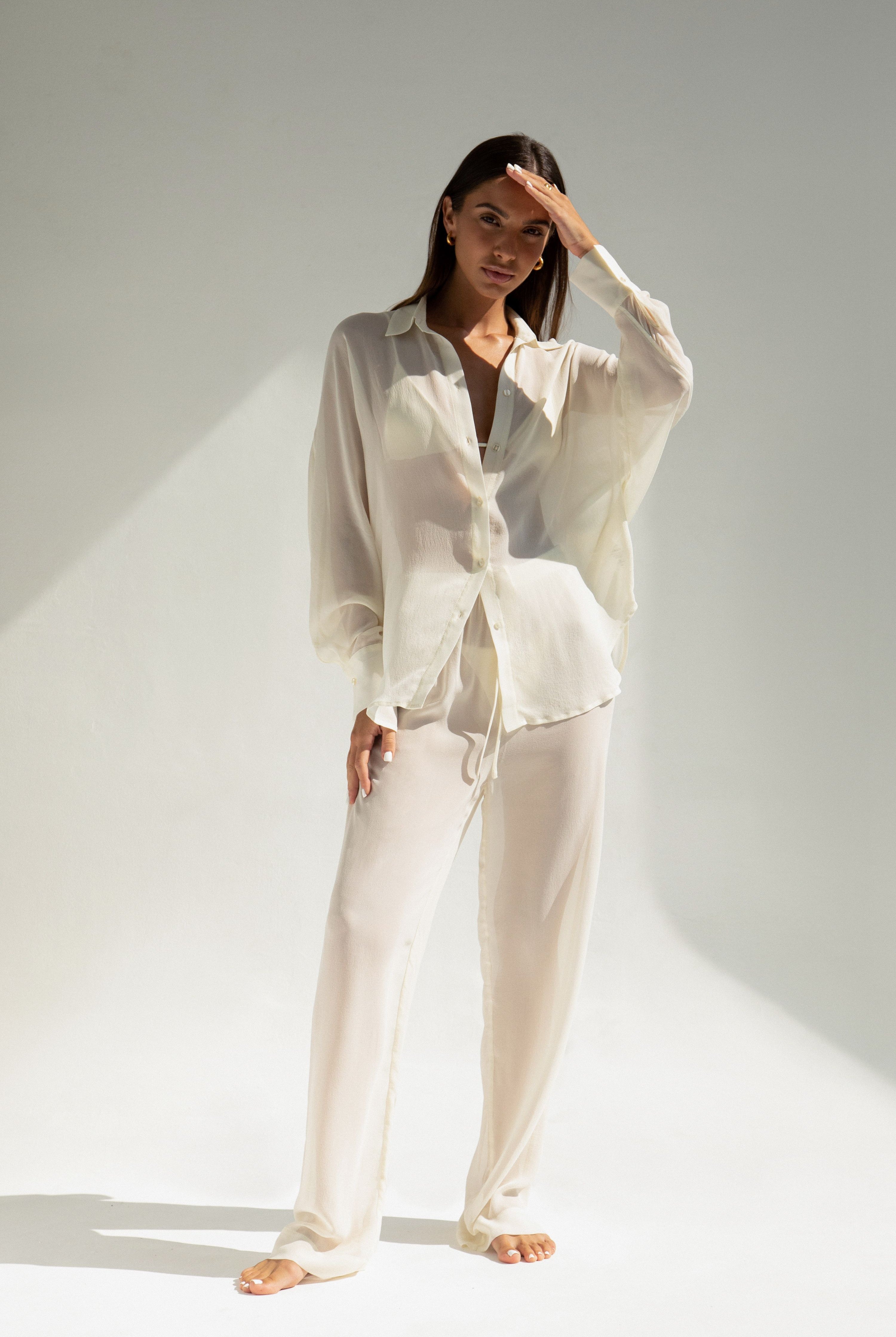 Heidi Top in Pearl, our beloved multiway Heidi Top, now in timeless Pearl. Designed with adjustable drawstring cups, you can style it your way, tie the straps around your neck, shoulders, or waist for endless versatility. To ensure complete confidence, all Pearl-colored pieces are crafted with an extra thin lining layer that prevents transparency. Double lined for support and finished with a seamless feel, Heidi is a refined essential for summer. Handmade in Bali.