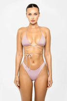 Bambi Bottom, Thong Bikini Bottom. Meet Bambi, our most playful thong bikini bottom, now available in Blush. Designed with slightly wider sides for a soft, comfortable hold, Bambi can be styled high on the hips for a leg-lengthening ’90s look or worn lower for a more classic fit.